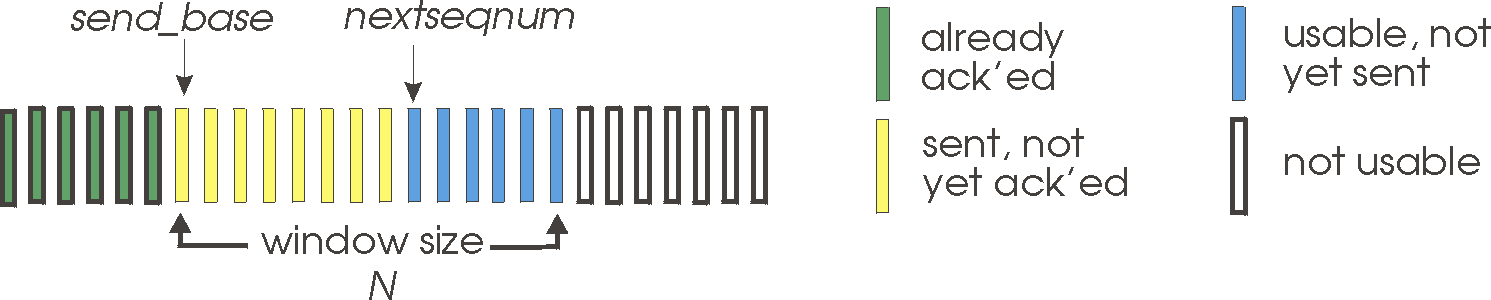 - $k$를 패킷 시퀀스 넘버 필드의 비트라 하면 숫자의 범위는 $[0, 2^{k} - 1]$ 이다.