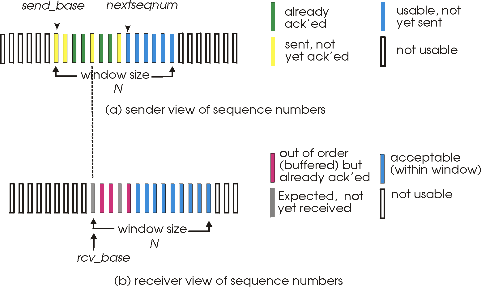 receiver의 rcvbase 값이 주어진 상황에서 sender의 window 범위는 가장 진보하지 못한 상태여도 rcvbase - N 밑으로 내려갈 수는 없을 것이다.