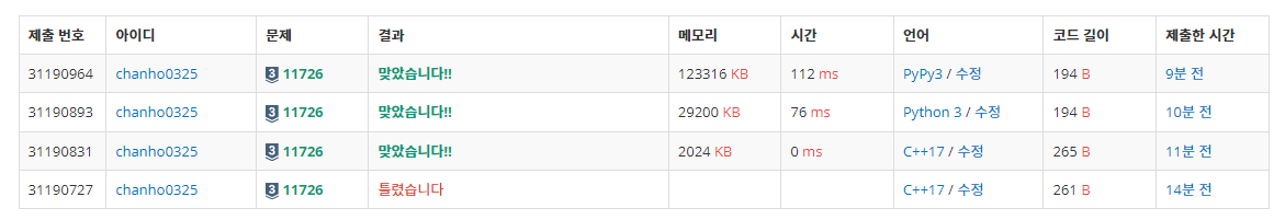 처음에 10007로 나눈 나머지를 출력하라는 것을 생각안하고 제출해서 틀렸다.
