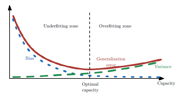 - capacity가 증가할 때 bias는 감소하고 variance는 증가하는 경향.